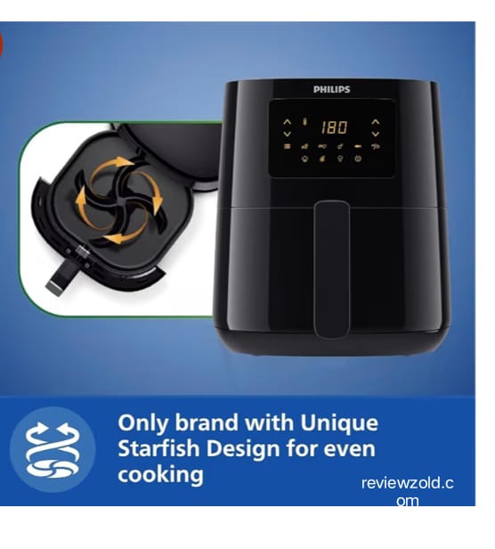 Philips Air Fryer ka unique starfish design jo 360-degree hot air flow se evenly cooking karta hai